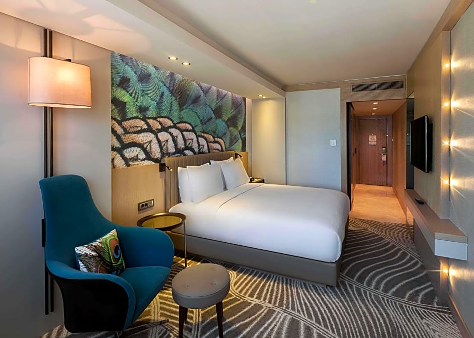 Queen Deluxe Room With Balcony is 377 square feet and includes a queen-size bed 150-154 width plus balcony, hairdryer, tea and coffee making facilities , safe, and bathrobes.