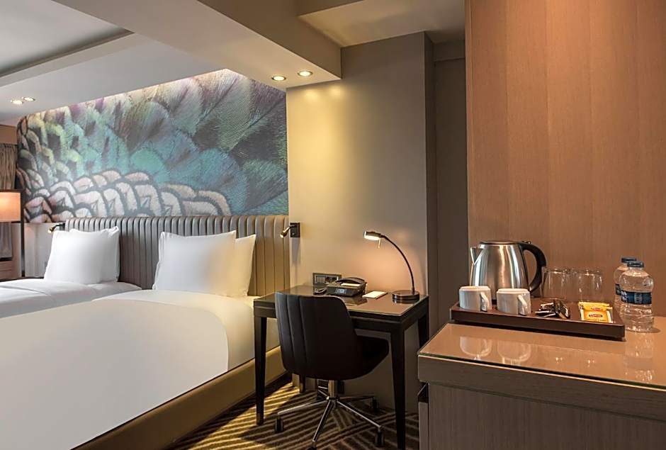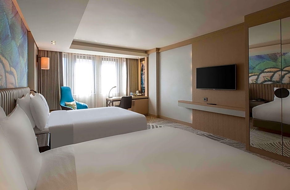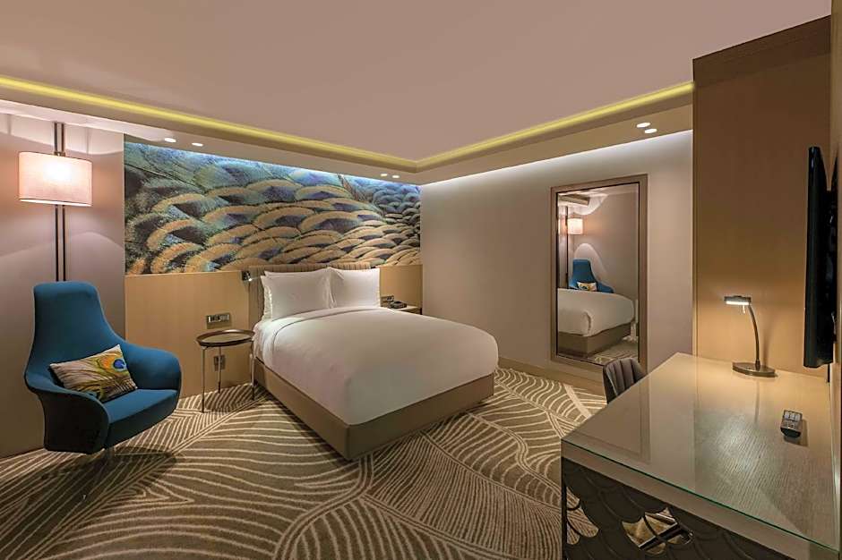 Queen Deluxe Room With Balcony is 377 square feet and includes a queen-size bed 150-154 width plus balcony, hairdryer, tea and coffee making facilities , safe, and bathrobes.
